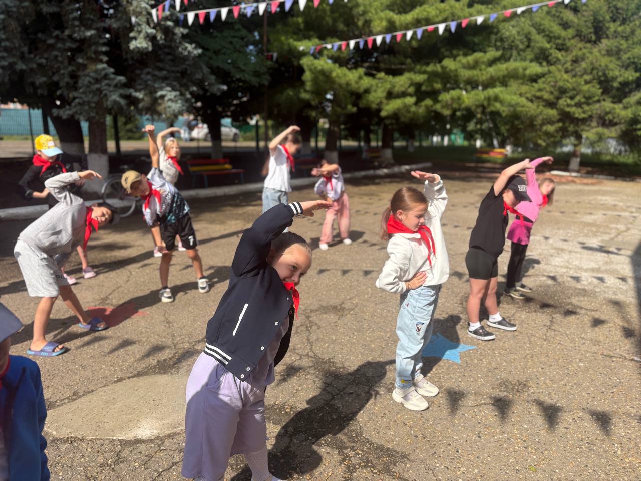 Сегодня наш день начался с активной, позитивной зарядки для первых! Утро выдалось чудесным, и мы собрались вместе, чтобы зарядиться энергией на весь день! Под веселую музыку мы выполняли различные упражнения: растяжка, бег на месте и даже танцевальные движения! Мы смеялись, общались и наслаждались временем вместе, наполняя наше утро радостью и хорошим настроением. Такая зарядка задает отличный темп на весь день и помогает нам быть бодрыми и активными! Давайте продолжать в том же духе!