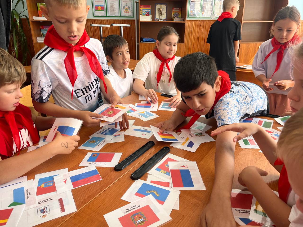 У Движения Первых появилась новая настольная игра «Флаги». Она создана по мотивам знаменитой «Мемори» и включает в себя 89 парных карточек с изображением флагов всех субъектов Российской Федерации. В начале все карточки перевёрнуты рубашкой вверх. Участники ходят по очереди, выбирают карточку и по памяти подбирают ей подходящую. Выигрывает тот, кто по итогу игры соберёт больше всего пар. Игра отлично подходит для того, чтобы с пользой провести время и подтянуть свои знания о нашей Родине! Ребята нашего лагеря с удовольствием сыграли в новую увлекательную настольную игру от Движения Первых.