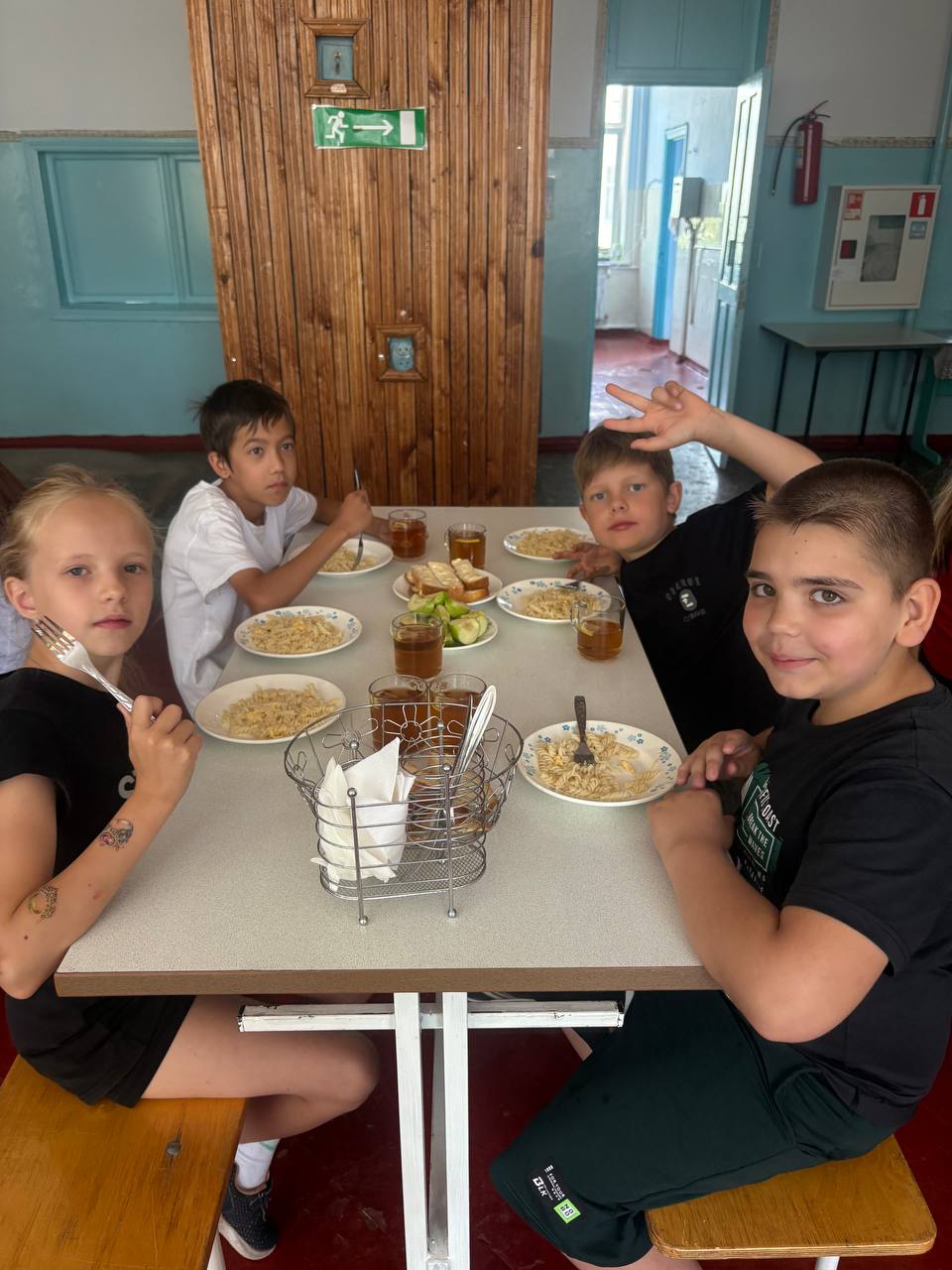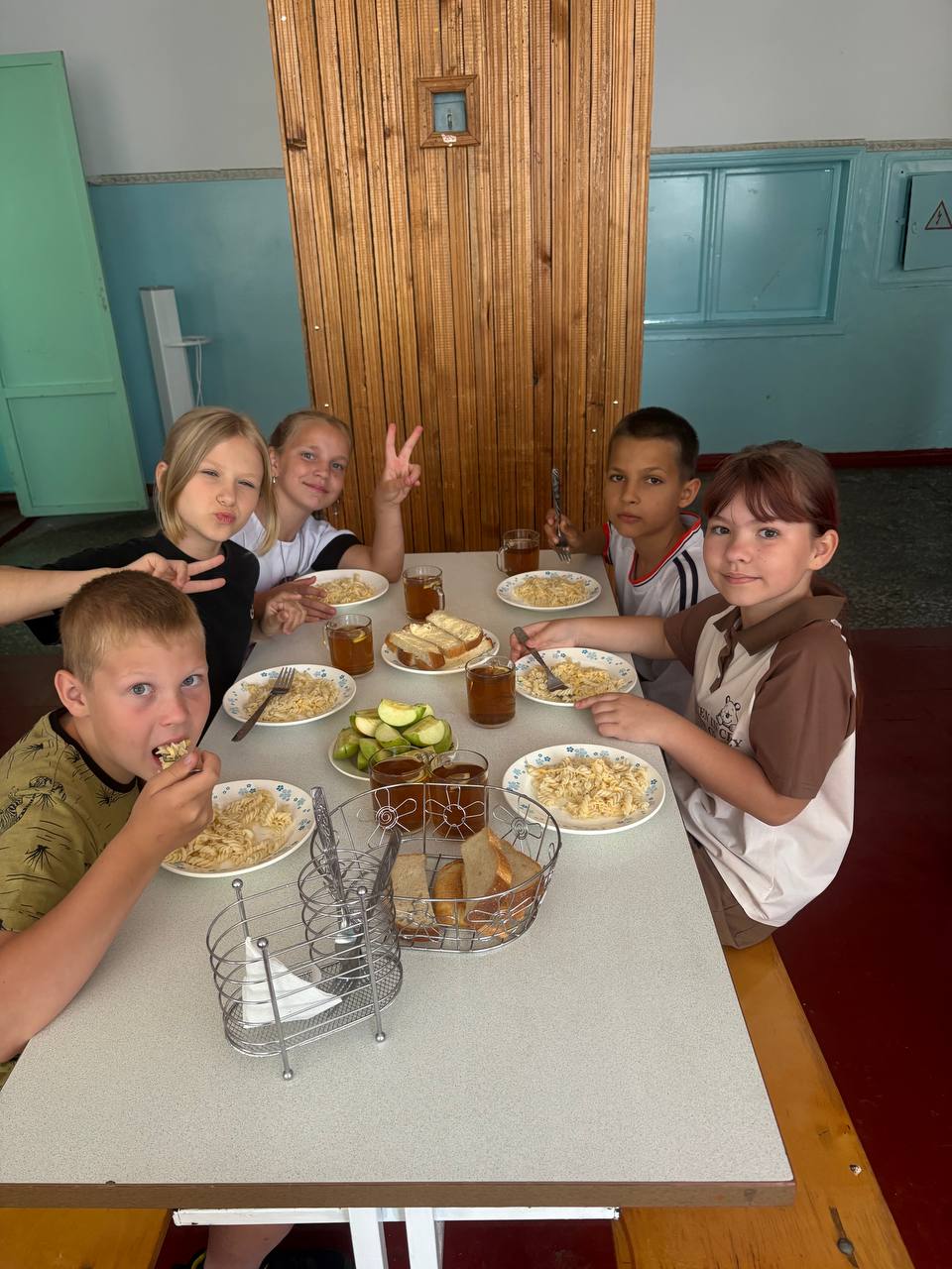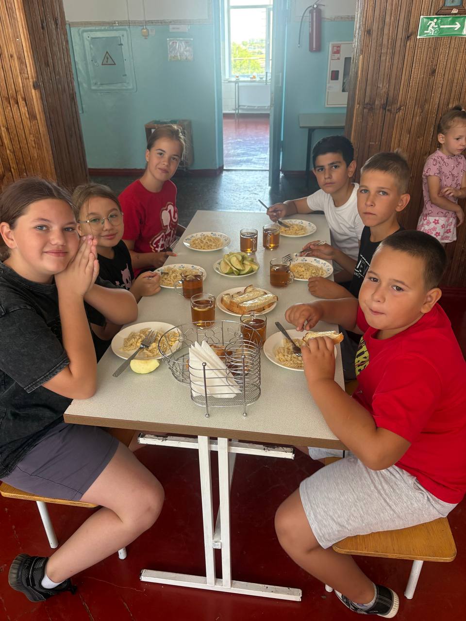 После зарядки мы собрались на завтрак , где нас ждали вкусные угощения и возможность поболтать с друзьями. Каждый поделился своими планами на день, и было заметно, как все готовы к новым приключениям!